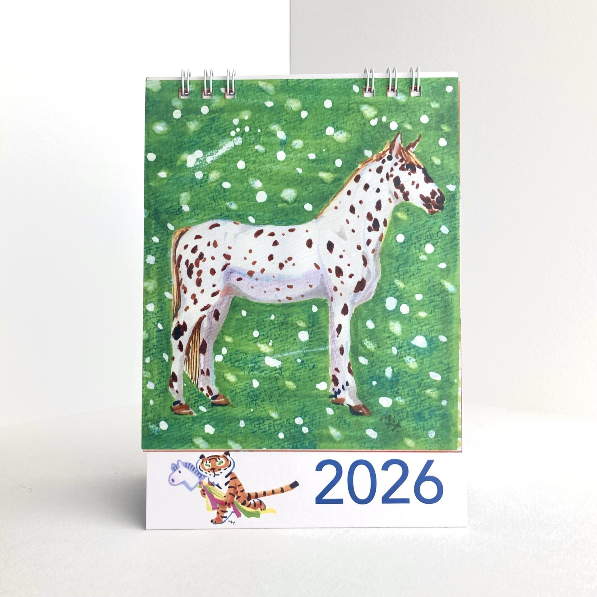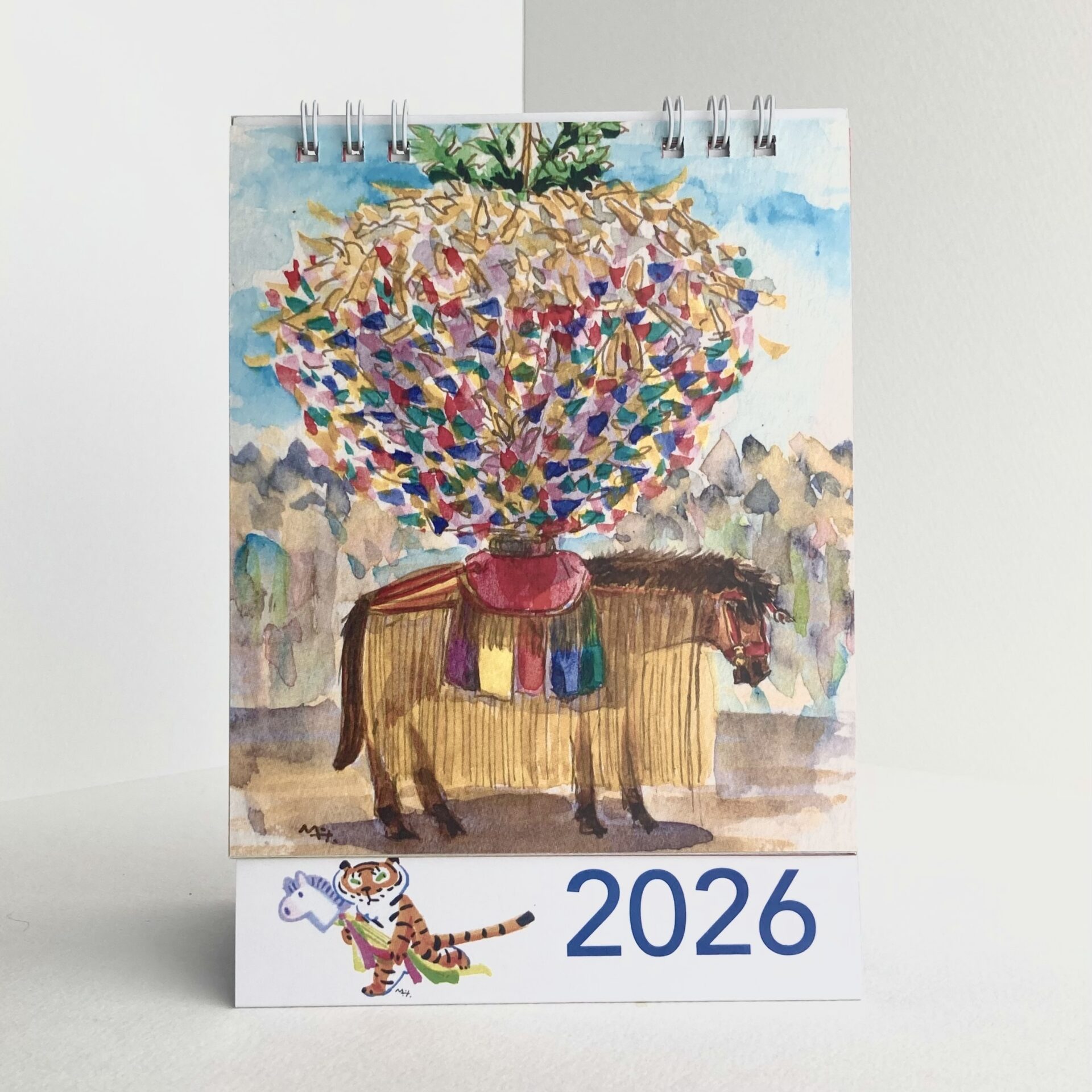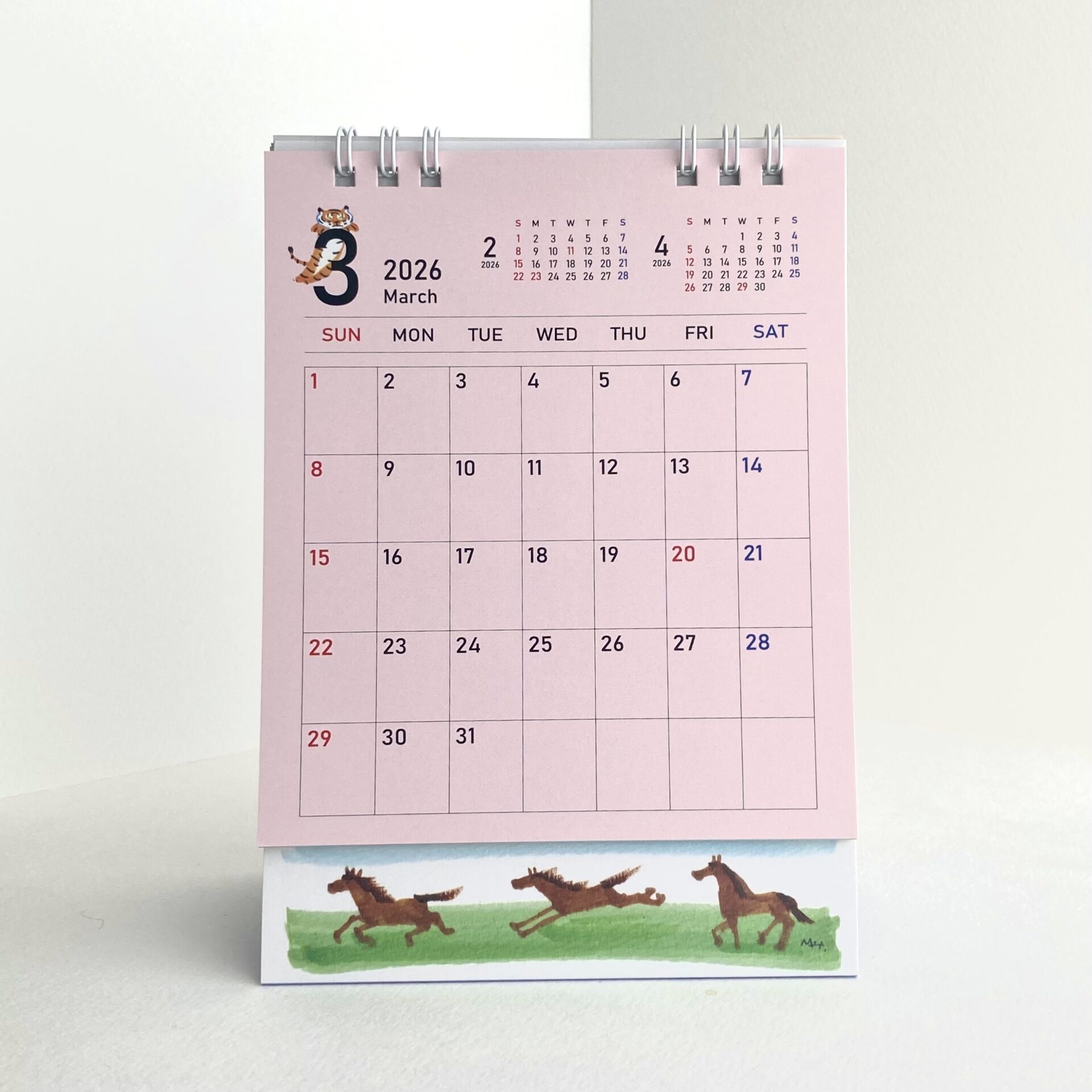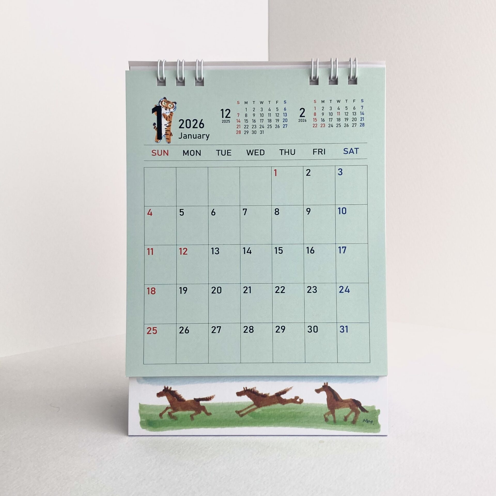 イラスト面は馬の絵のみ、カレンダー面にトラちゃんがワンポイント入っているという体裁になりました。