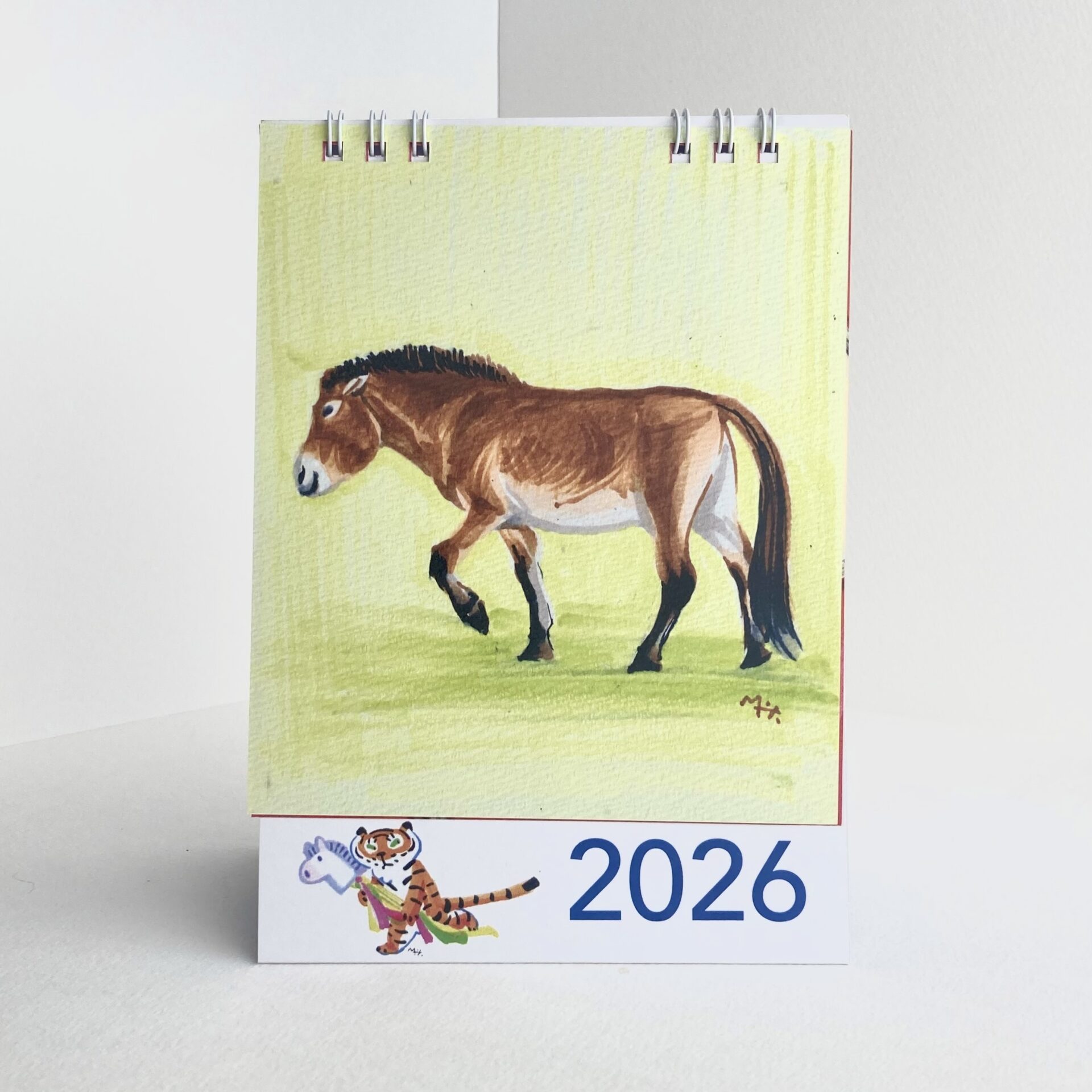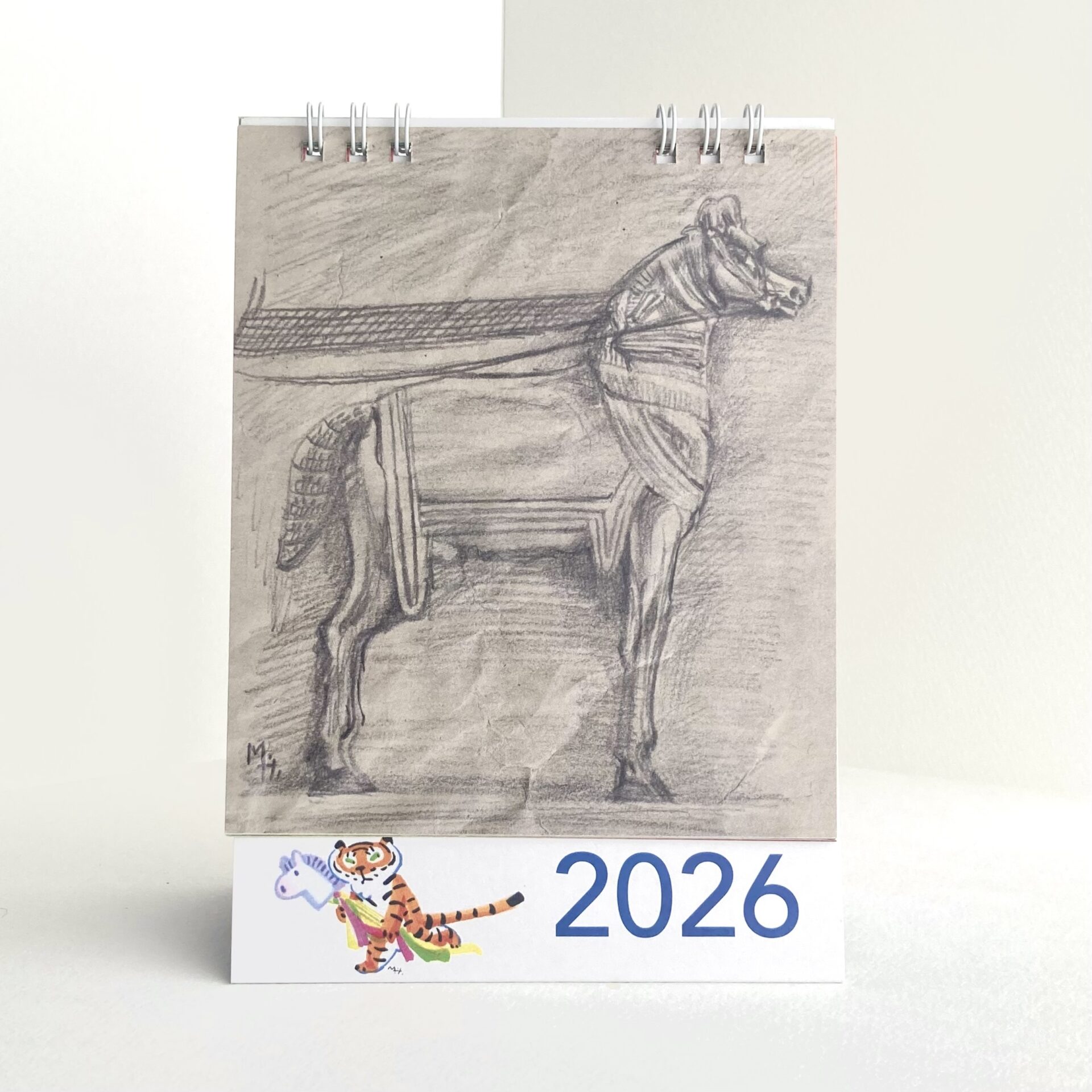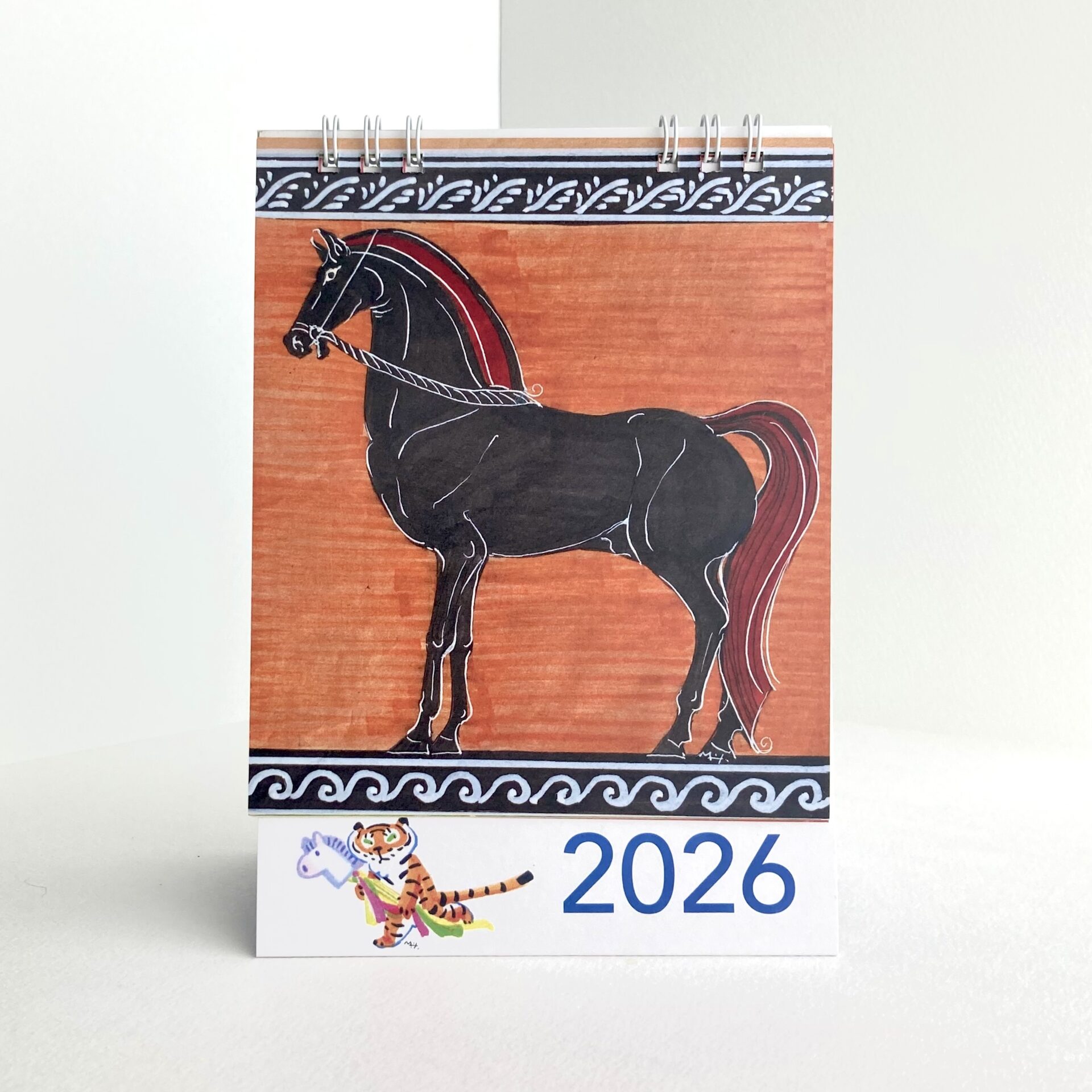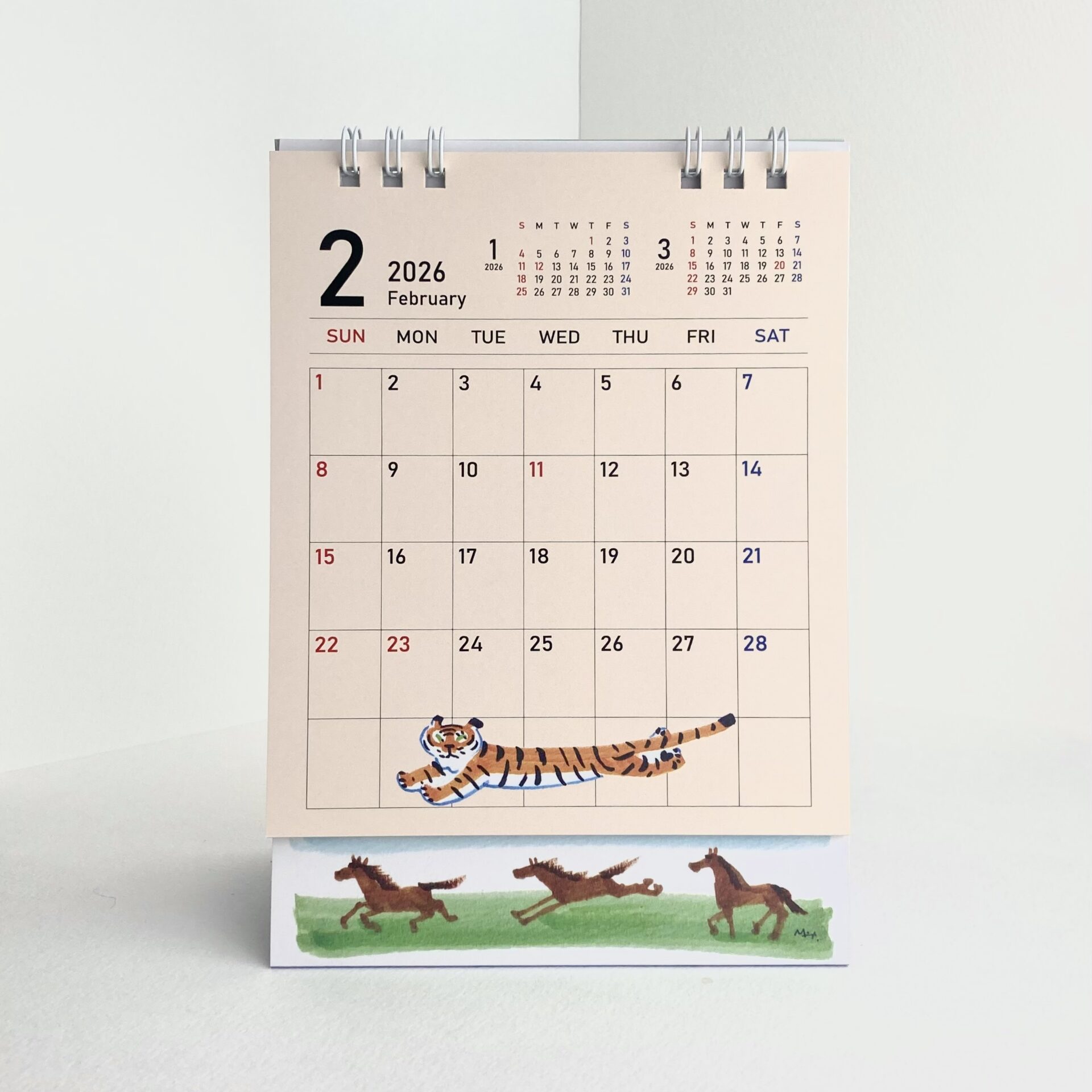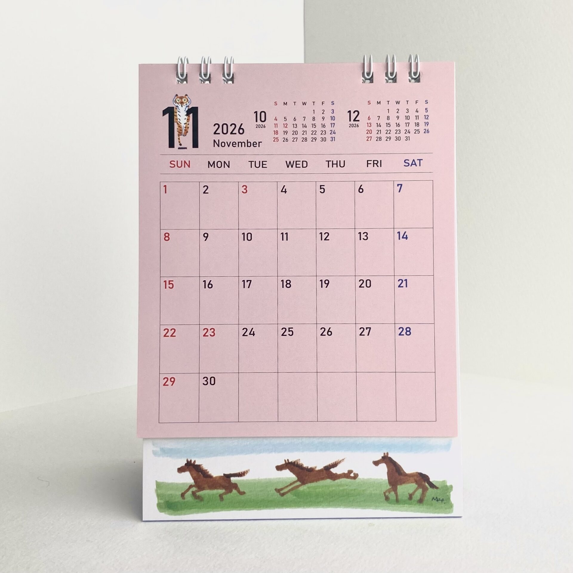 イラスト面は馬の絵のみ、カレンダー面にトラちゃんがワンポイント入っているという体裁になりました。